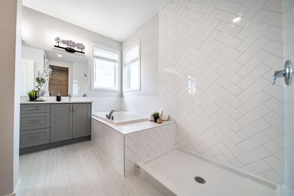 Watch the cinematic property tour! Seller offering a $10,000 Cash Incentive to put towards your Landscaping! This is your LAST CHANCE to purchase a JEFFERSON model in Belmont! No need to wait for construction to be completed, this BRAND NEW 5 Bedroom home built by Avi is ready for you to move in and enjoy! With over 3100 square feet of fully developed space, this home checks every single box. Thoughtfully designed and packed full of upgrades, including 9 foot ceilings on the main and upper levels, upgraded window package with over-sized triple pane windows throughout including the basement, oversized 8 foot sliding glass doors, and more! The kitchen is BEAUTIFUL and is a true chef’s dream, with all top of the line stainless steel appliances, including a Whirlpool 5 Burner Gas Cooktop with Griddle, Smart Built-in Wall Oven, Upgraded Chimney Style Hood Fan, Triple Rack Dishwasher, and Whirlpool Double Door Refrigerator with Drawer Freezer. The gleaming quartz counter-tops provide vast counter space with a large kitchen island, perfect for entertaining. Soft close cabinets are upgraded to ceiling height, and soft close drawers provide tons of storage. The open concept living area sprawls out into the dining area and overlooking the spacious living room, with a magnificent floor to ceiling herringbone electric fireplace. The main floor is complete with an office space, perfectly located in close proximity to the heart of the home, while still providing a quiet, private spot. Walking up the stairs you’ll admire the upgraded iron railings, opening up into your HUGE bonus room! The primary suite is an OASIS, with a 5 piece en-suite including double sinks, a deep soaker tub, glass shower, and large walk in closet. 3 additional great sized bedrooms are on the upper level, with their own 3 piece bathroom with upgraded floor to ceiling tile glass walk in shower, and a spacious laundry room plumbed to add a sink if you wish. High end Washer & Dryer are already included in your home, as well as a FULL Shade-O-Matic Blind package throughout! The basement is FULLY FINISHED with another large living area, a 5th bedroom, storage room, and a full 4 piece bathroom with a tub. Park two vehicles in your double attached garage, and two more in the driveway. AIR CONDITIONING is already roughed in, just awaiting you to choose your unit and install, and the backyard is a blank canvas, awaiting your custom design choices. Enjoy all that the ever-growing community of Belmont has to offer! Short distance to all amenities, and home to 5 playgrounds, a future recreational facility, and future LRT station. Available for your immediate possession, book your private viewing today!