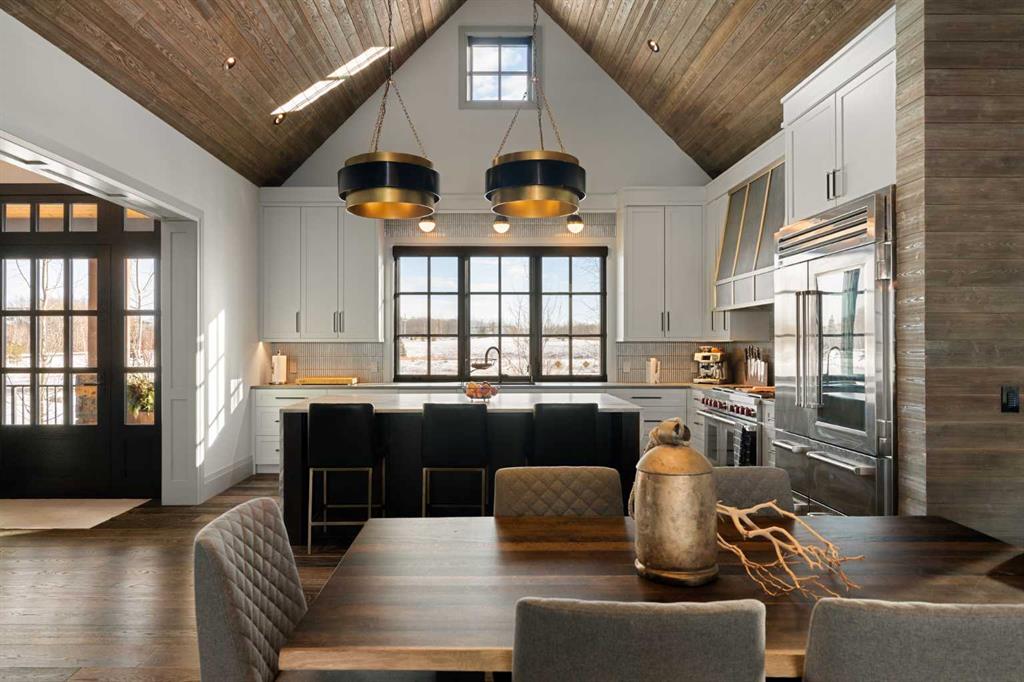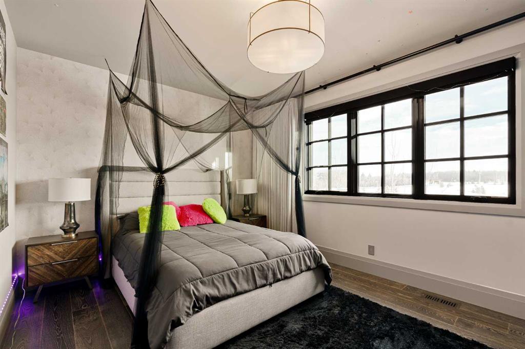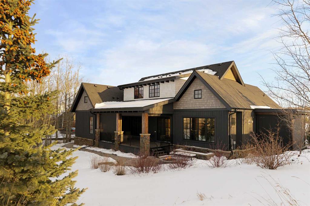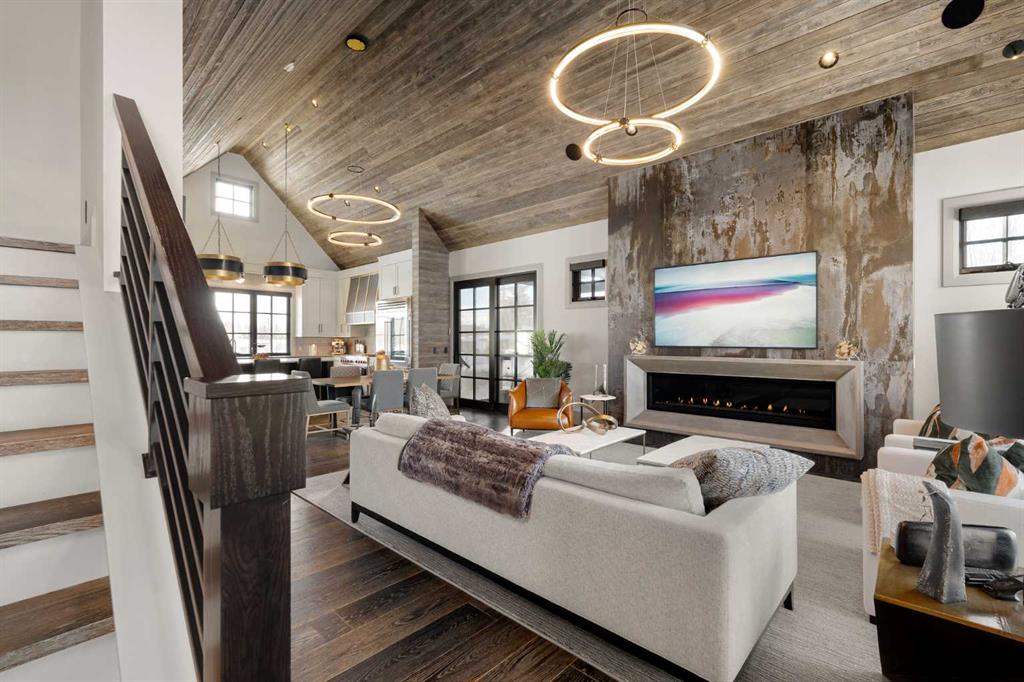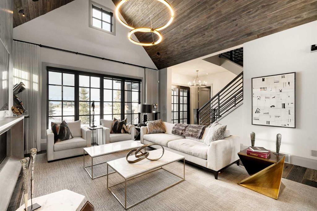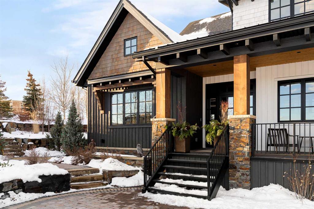 Watch the FULL home tour on YouTube of this exceptional modern, farmhouse inspired home! Welcome to Silverhorn Park in Bearspaw, where luxury, privacy, and timeless design come together on a stunning 1.49 acre estate backing open green space. Thoughtfully landscaped with mature trees, natural stonework, a large outdoor firepit, and two heated decks with Phantom screens, this residence is the perfect blend of modern architecture and rustic farmhouse warmth.