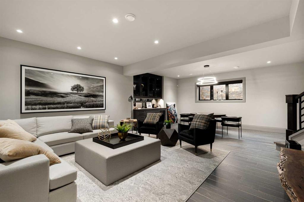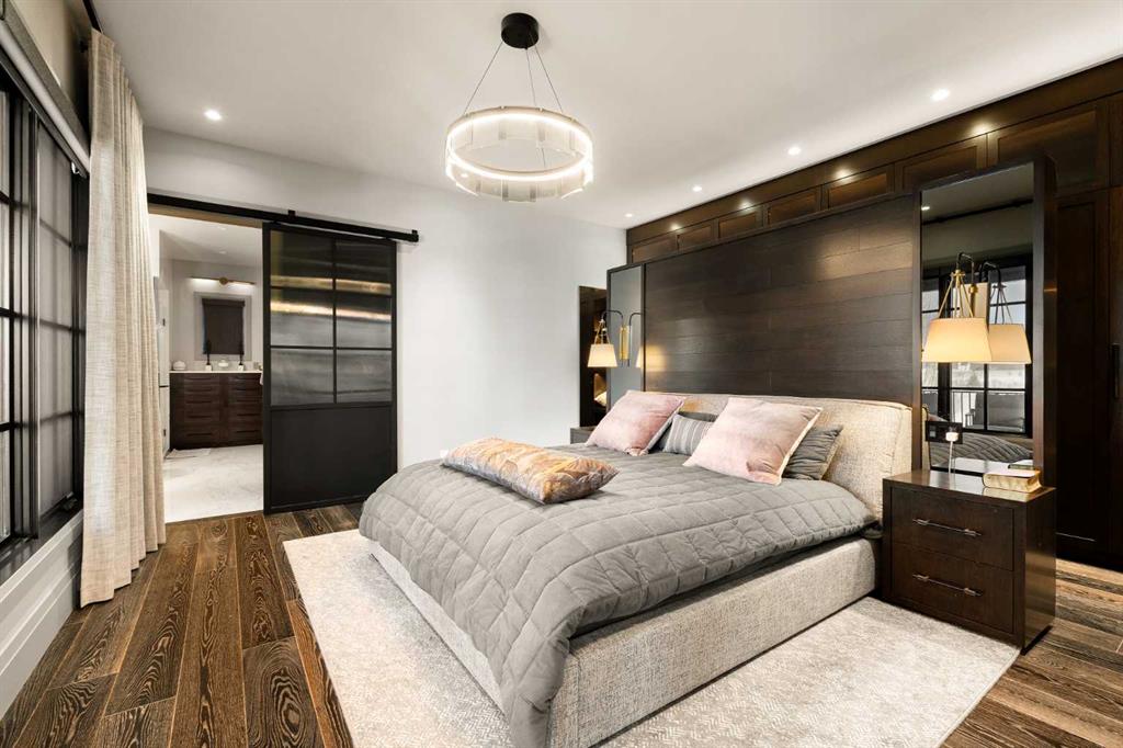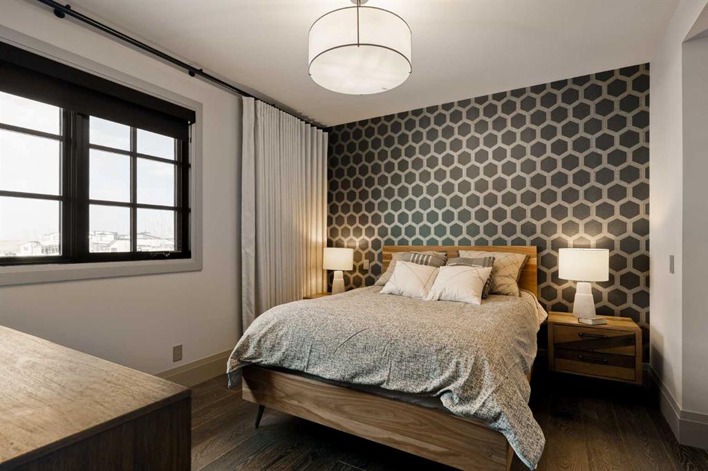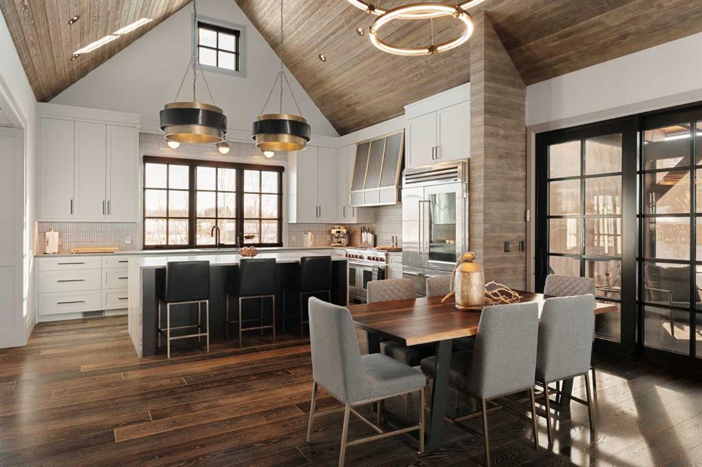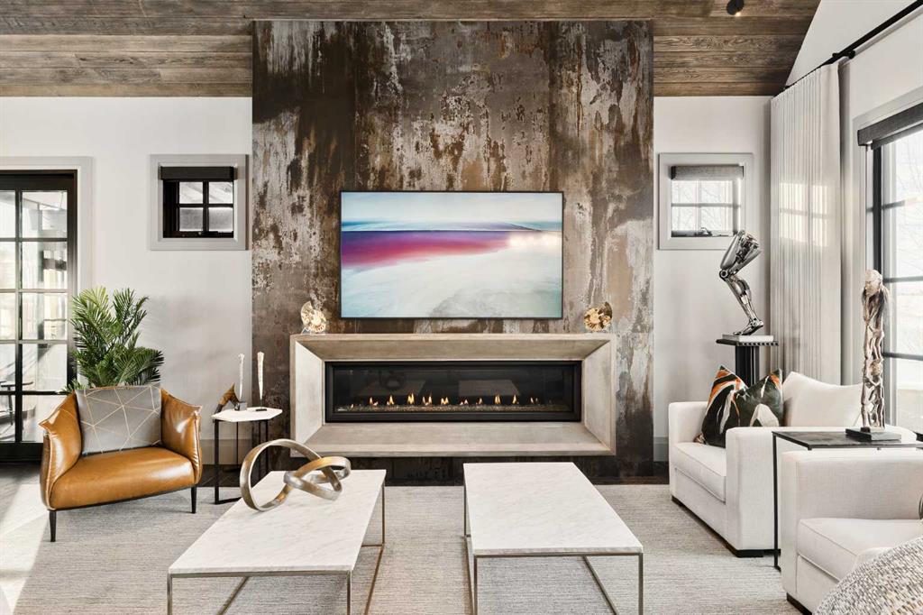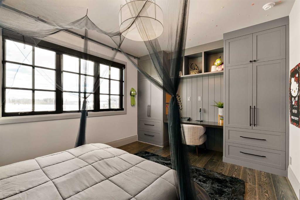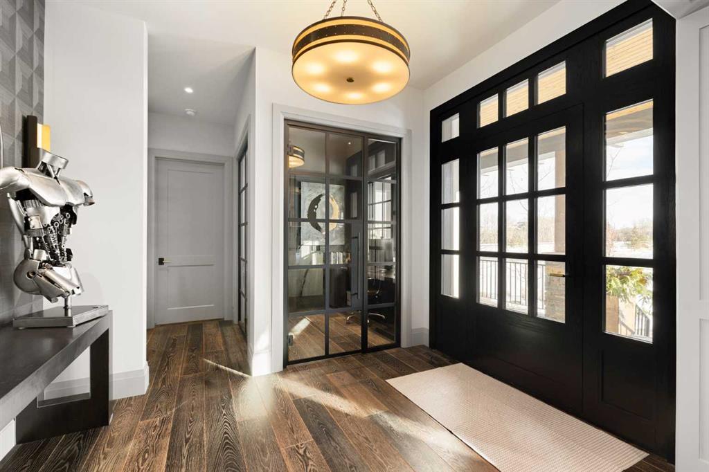Watch the FULL home tour on YouTube of this exceptional modern, farmhouse inspired home! Welcome to Silverhorn Park in Bearspaw, where luxury, privacy, and timeless design come together on a stunning 1.49 acre estate backing open green space. Thoughtfully landscaped with mature trees, natural stonework, a large outdoor firepit, and two heated decks with Phantom screens, this residence is the perfect blend of modern architecture and rustic farmhouse warmth.