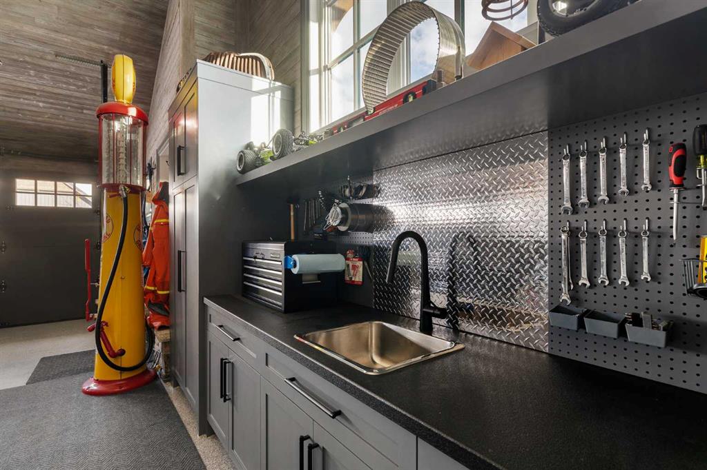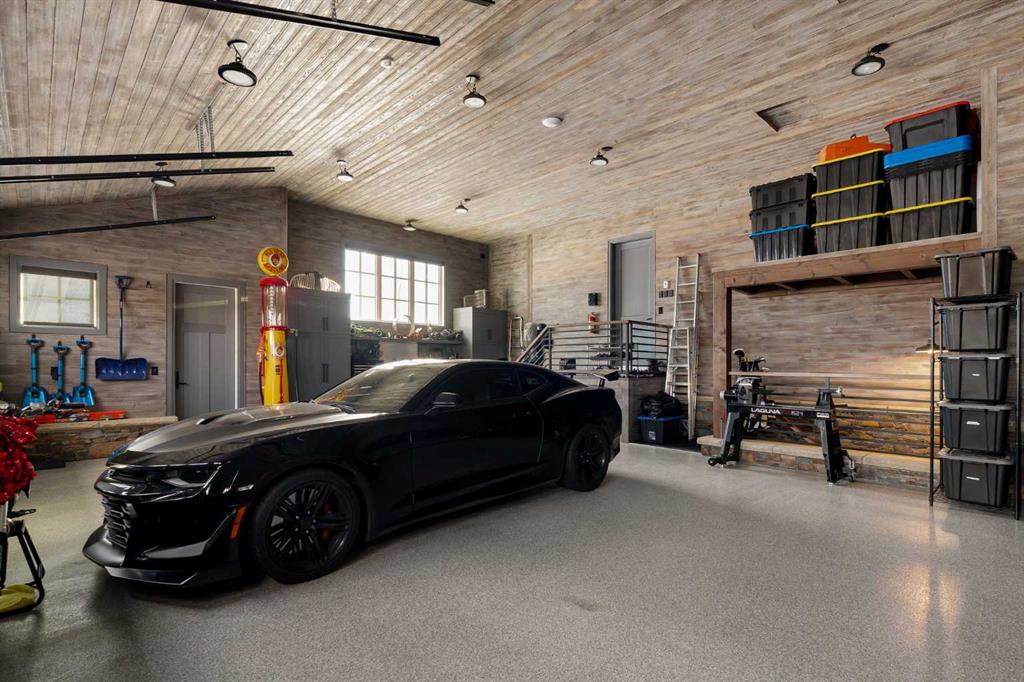 A well-designed mudroom houses the laundry room with a sink, tons of storage, and leads to the nicest garage you have ever seen, a heated triple car haven with epoxy floors, custom built-in workbench, and a wood ceiling treatment on the vaulted ceilings.