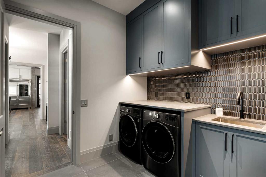 Upstairs features a secondary laundry room and two spacious bedrooms, each with their own walk-in closets and private ensuites.