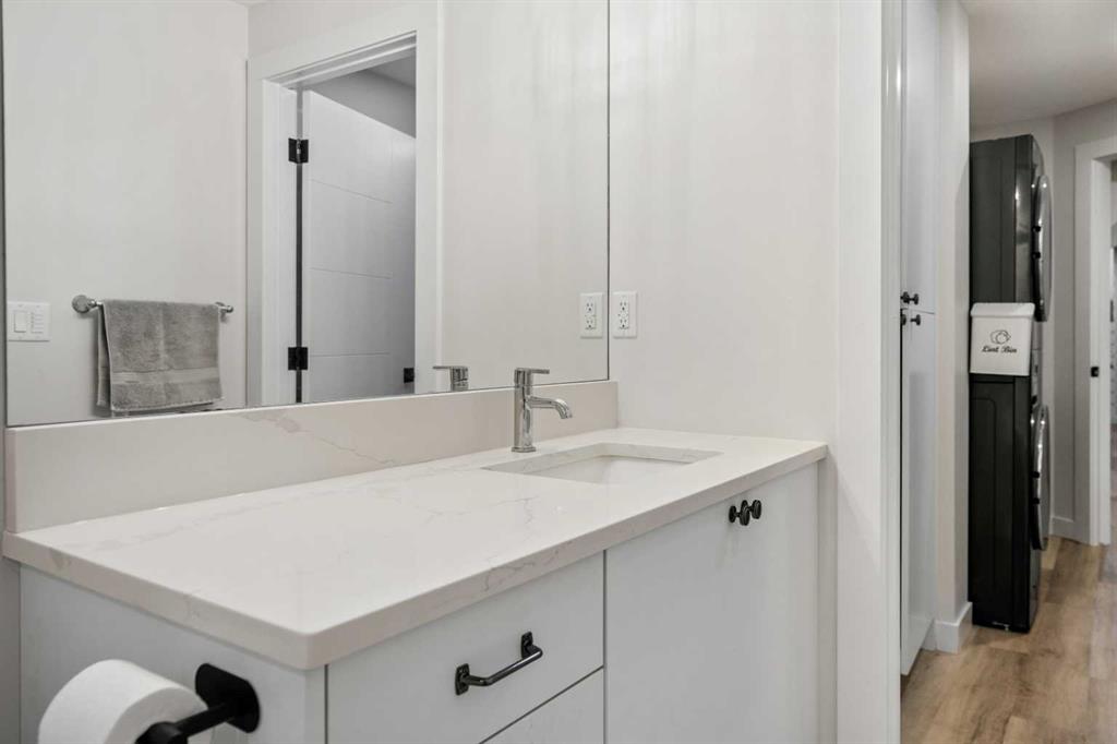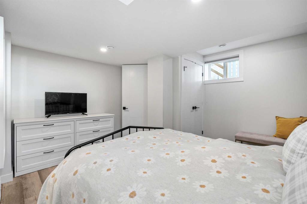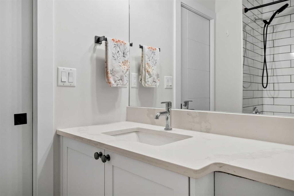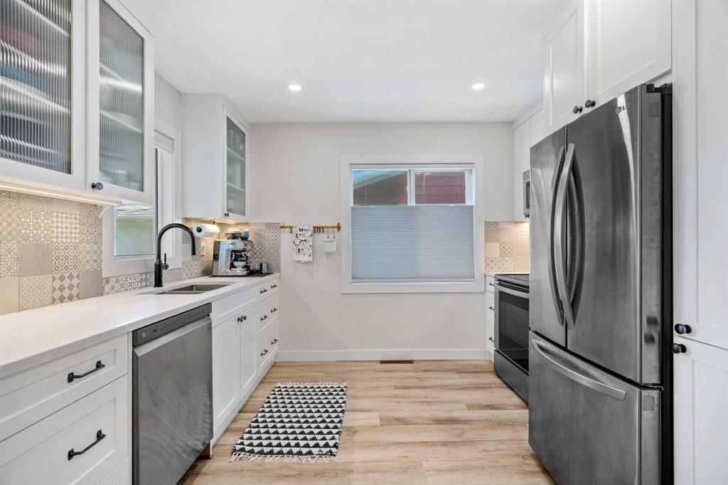 OPEN HOUSE SATURDAY OCT. 18TH 12-2 PM! Modern, chic, inner-city living without the HIGH price tag! This fully renovated, semi-detached bungalow is the perfect option for those who want contemporary style in an unbeatable location. 3 bedrooms, 2 full bathrooms, a fully finished lower level, fully fenced yard AND a double detached garage – This home checks all your boxes. You will be impressed from the moment you pull up with the adorable curb appeal, perfect for decorating every season. Entering the home you’ll love the vinyl plank flooring throughout, and the soft and soothing cream white walls. The living/dining area is a great size, with a large south facing window letting the daylight shine in. The electric fireplace is chic and timeless, tying into the rest of the homes color palette which makes it suitable for all tastes and styles! The kitchen is classic, with white shaker cabinets, deep drawers for adequate storage, white quartz counter-tops, and stainless steel appliances. There are 2 great sized bedrooms at the rear of the home, and a full 4 piece bathroom to complete the main floor. The lower level is fully finished with a HUGE rec room and additional flex space. Here you will find the Primary Retreat – a large room, perfectly situated with it’s own 3 piece en-suite and connected to the laundry room. The backyard is fully fenced and is a great size for inner-city living! The double detached garage is the cherry on top, in addition to ample street parking out front. LOCATION, LOCATION, LOCATION, on a quiet street in Rutland Park, close to schools for kids all ages, MRU, Marda Loop, shopping, parks, playgrounds, and most importantly – the Legendary Glamorgan Bakery. This is your opportunity to make SW’s Rutland Park home! Book your private showing today.