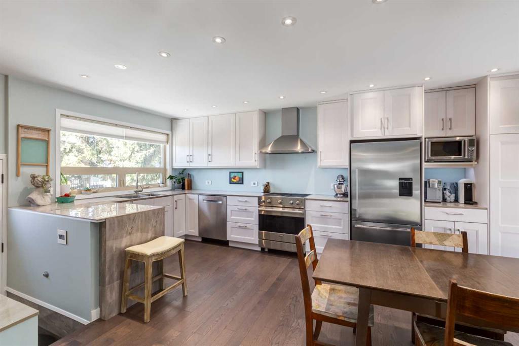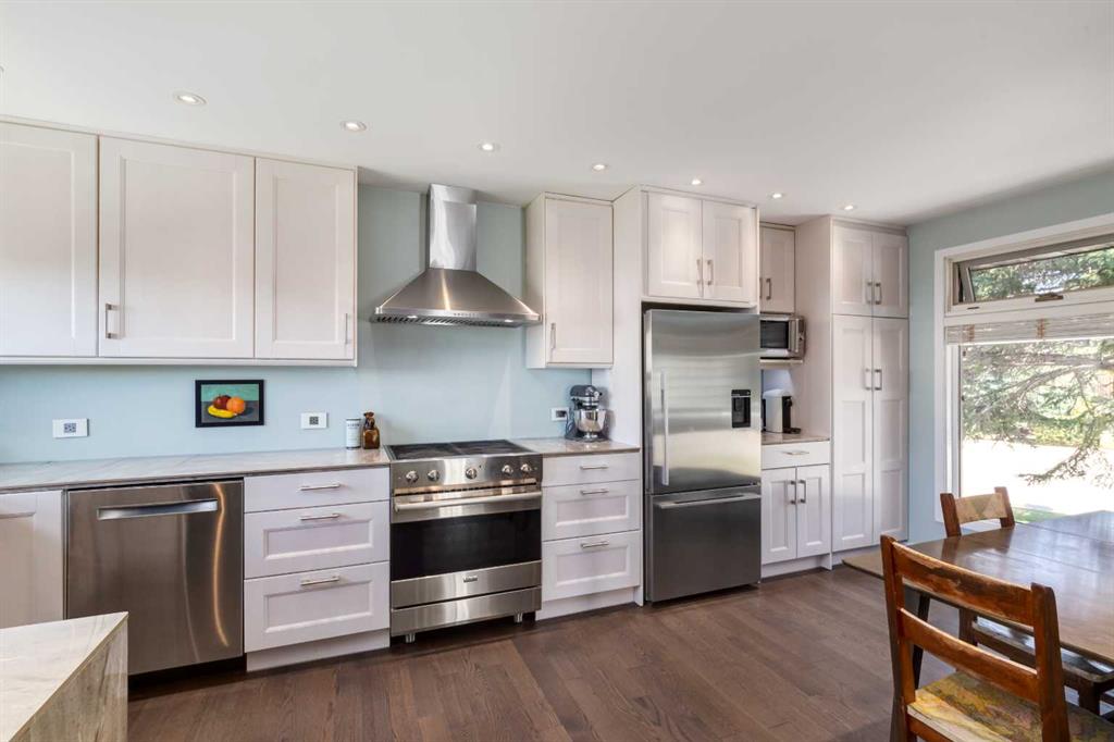 *Watch the Cinematic Property Tour!* Welcome home to this Spectacular Home in Lakeview! Step inside to the newly renovated kitchen, with ample floor to ceiling storage, and soft close drawers/cabinets. High end stainless steel appliances include a Viking Gas Stove, Fisher Paykel counter depth fridge, Bosch Dishwasher, high suction range hood and Insinkerator garburator. Enjoy the luxury of Instant Hot Water at the kitchen and bathrooms, and under cabinet lighting! Main floor has newer engineered hardwood throughout, and your living room with beautiful bay window is the perfect spot to gather! 3 great sized bedrooms are found on this floor, with built in closet organizers in the primary. The bathroom with huge jetted soaker tub is something out of a spa! Enjoy it as is, or easily convert into a large walk in shower. The lower level is finished, with newer carpet, and a massive family room. There is a full workshop in the basement, laundry room with sink, and storage/lower level additional pantry. The fourth bedroom downstairs is a great size, with a 3 piece bathroom and a custom built in Towel Heater! The utility room houses your Navien Hydronic In-Floor Heat System, which means each room as it’s own separate climate control! 2 Tankless Water Heaters and a Water Softener are an added luxury. No Furnace, no huge hot water tank = Unlimited, instant hot water! The large backyard is an absolute dream, backing onto the prestigious Connect Charter Science school means no neighbours behind, and kids could walk to school. The yard is West Facing for ample sunshine with peak a boo mountain views. Enjoy the custom play house, canoe shelter, reinforced deck, and tons of grass for the kids or pets to run and play. This lot is HUGE, over 8200 sq ft – one of the largest in the community. There’s ample room to build your dream triple car garage (already has the gravel laid/compacted, with electrical, heat and water setup) The RV outlet is perfect for the camping type of family! Telus Fibre Optic already installed in this area. If you’re shopping in Lakeview, you already know how incredible this community is. The Calgary Rowing and Canoe Clubs, The Glenmore Reservoir and Glenmore Park, fantastic schools and parks nearby, and numerous hiking and biking paths! Convenient shopping and restaurants blocks away, and easy access to anywhere in the city. Book your private viewing today!