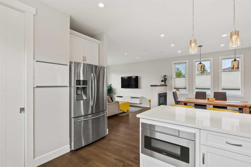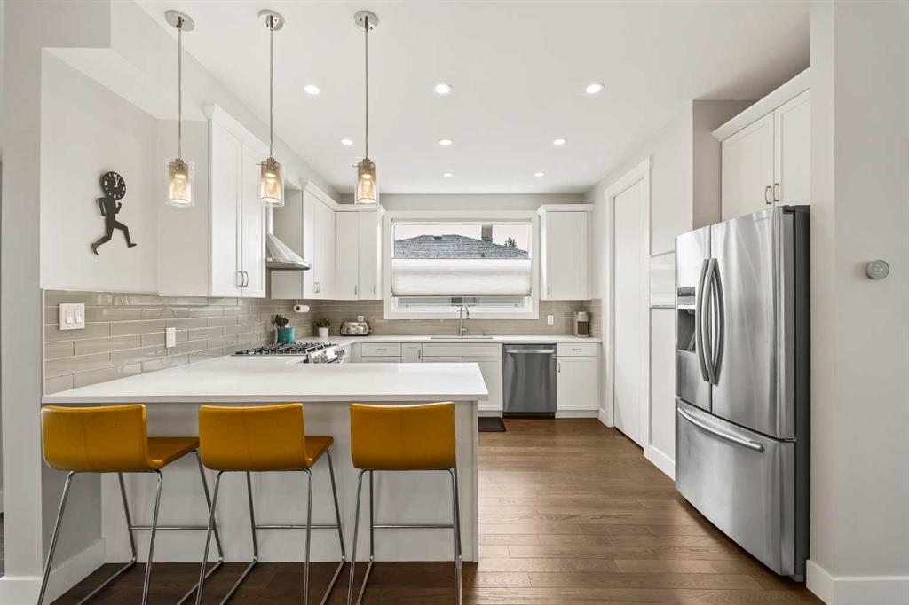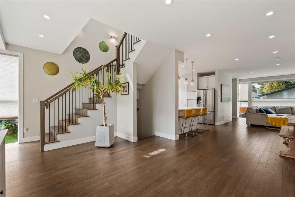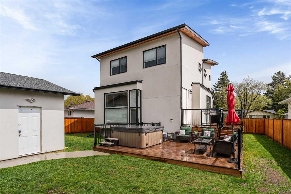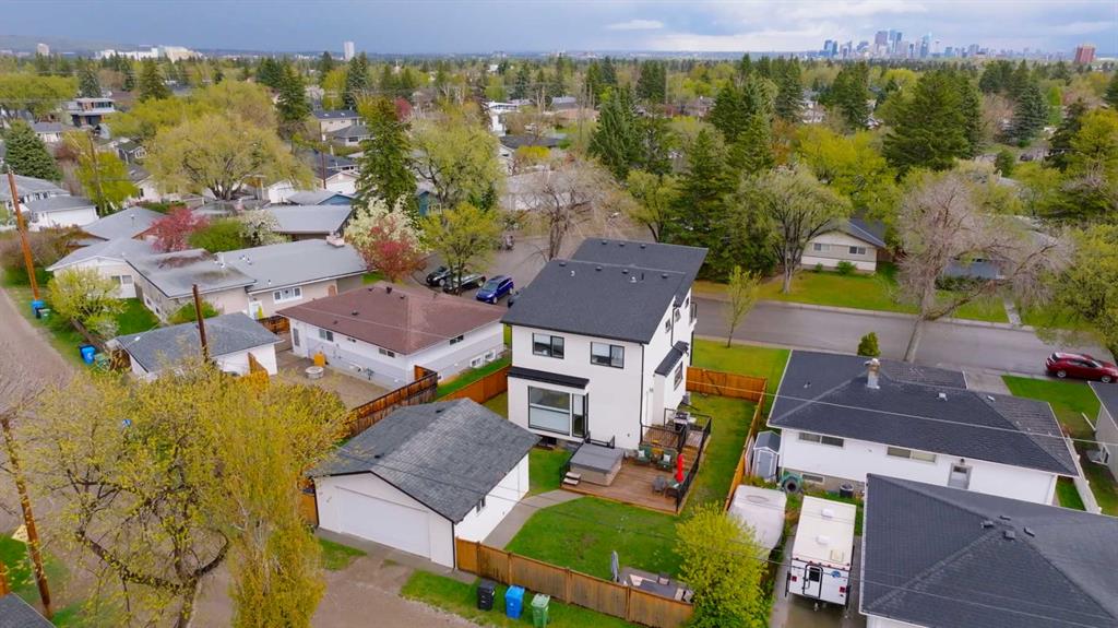 Perfectly positioned on a massive west-facing pie lot, this modern two-storey stunner rises above the crowd—literally and figuratively. Featuring 4 bedrooms, 3.5 bathrooms, and over 2,700 sq ft of fully developed, beautifully designed living space. This home combines timeless style with everyday functionality. Step inside to soaring floor-to-ceiling windows that flood the open-concept main floor with natural light; complete with Hunter Douglas blinds for privacy when you want it. Notice the flat finish on the ceilings throughout this home, no popcorn or knock down ceilings here! The kitchen is both chic and functional with white quartz countertops, timeless white cabinetry, stainless steel appliances including a gas range, and a great sized walk-in pantry. The spacious dining area is perfect for hosting, while the gas fireplace creates the perfect amount of separation from the cozy living room. Off the kitchen, your west-facing backyard oasis awaits. Featuring a two-tiered deck, space for BBQing and entertaining, hot tubbing, and soaking up the sun, and plenty of room for the kids or pets to play. Don’t miss the oversized double garage with alley access—perfect for all your gear, vehicles, or projects. Upstairs, you’ll be wowed by 14-foot vaulted ceilings throughout that will have you in awe when you enter your primary retreat, complete with custom built-ins for additional closet space, a private east balcony for your morning coffee, and a 5-piece spa-like en-suite with a soaker tub, glass shower, and dual sinks. Two additional bedrooms overlook the backyard, plus a spacious laundry room with sink and another 4-piece bath complete the upper level. The fully finished basement takes entertaining to the next level with a projector, sound system, wet bar, and room for family games or workouts. The 4th bedroom and an additional 4-piece bathroom make this space perfect for guests or growing families. Located in the sought-after SW community of Westgate, you’ll love the easy access to Bow Trail, 17th Ave, and Sarcee Trail, making your commute a breeze. Plus, you’re just steps from Westgate Elementary, Vincent Massey Junior High, and Edworthy Park’s endless greenspaces and Bow river pathways. Don’t miss out on this one of a kind property, book your private viewing today!