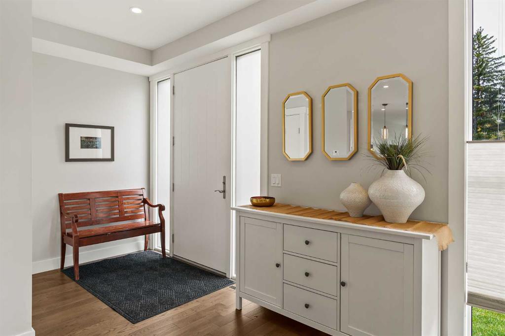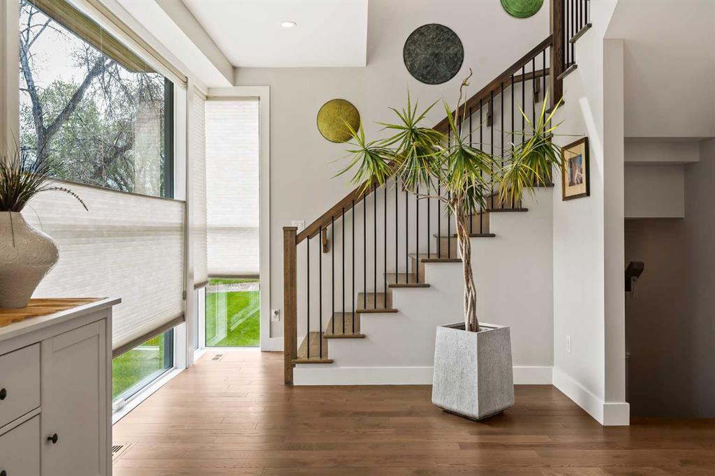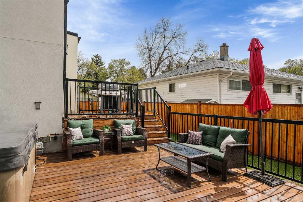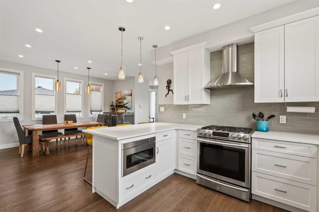 Perfectly positioned on a massive west-facing pie lot, this modern two-storey stunner rises above the crowd—literally and figuratively. Featuring 4 bedrooms, 3.5 bathrooms, and over 2,700 sq ft of fully developed, beautifully designed living space. This home combines timeless style with everyday functionality. Step inside to soaring floor-to-ceiling windows that flood the open-concept main floor with natural light; complete with Hunter Douglas blinds for privacy when you want it. Notice the flat finish on the ceilings throughout this home, no popcorn or knock down ceilings here! The kitchen is both chic and functional with white quartz countertops, timeless white cabinetry, stainless steel appliances including a gas range, and a great sized walk-in pantry. The spacious dining area is perfect for hosting, while the gas fireplace creates the perfect amount of separation from the cozy living room. Off the kitchen, your west-facing backyard oasis awaits. Featuring a two-tiered deck, space for BBQing and entertaining, hot tubbing, and soaking up the sun, and plenty of room for the kids or pets to play. Don’t miss the oversized double garage with alley access—perfect for all your gear, vehicles, or projects. Upstairs, you’ll be wowed by 14-foot vaulted ceilings throughout that will have you in awe when you enter your primary retreat, complete with custom built-ins for additional closet space, a private east balcony for your morning coffee, and a 5-piece spa-like en-suite with a soaker tub, glass shower, and dual sinks. Two additional bedrooms overlook the backyard, plus a spacious laundry room with sink and another 4-piece bath complete the upper level. The fully finished basement takes entertaining to the next level with a projector, sound system, wet bar, and room for family games or workouts. The 4th bedroom and an additional 4-piece bathroom make this space perfect for guests or growing families. Located in the sought-after SW community of Westgate, you’ll love the easy access to Bow Trail, 17th Ave, and Sarcee Trail, making your commute a breeze. Plus, you’re just steps from Westgate Elementary, Vincent Massey Junior High, and Edworthy Park’s endless greenspaces and Bow river pathways. Don’t miss out on this one of a kind property, book your private viewing today!